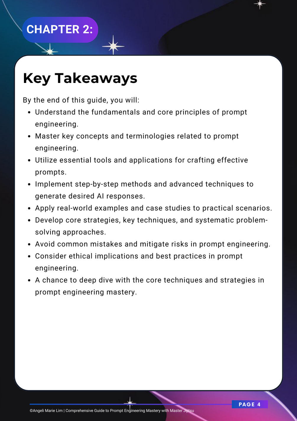 This guidebook is your all-in-one solution to understanding prompt engineering across marketing, business, and tech. To take your skills even further, you'll have the option to access the Ultimate Prompt Engineering Course Bundle—a paid, in-depth training packed with advanced frameworks and hands-on techniques to maximize AI’s potential and set you apart from the competition.